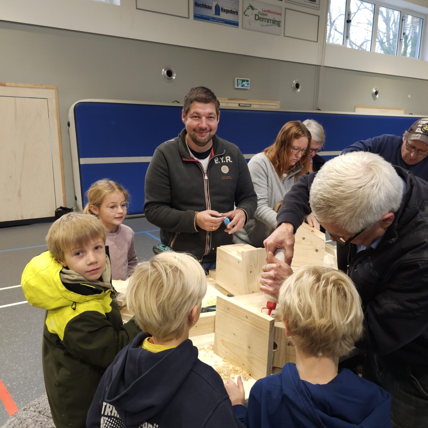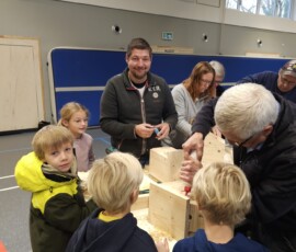 Bei unserer Nistkastenaktion wurde geschraubt, gelacht und gefachsimpelt. Und das nicht nur von Eltern und Kindern. Besonders schön war es zu sehen, wie viele Großeltern gemeinsam mit ihren Enkeln voller Eifer am Werk waren.