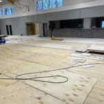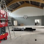 Dann ging es auch schon los mit dem weiteren Innenausbau und den Malerarbeiten in den Kabinen, in den Durchgängen und der Bühne. Im Februar hat der Clubraum dann seine neue Akustikdecke bekommen. Parallel wurden die Turnringe und Kletterseile im Saal wieder installiert und danach hielten unsere neuen Deckenpanelen als Verkleidung für unsere mega moderne Deckenstrahlheizung Einzug.
